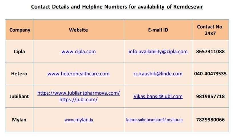 रेमडेसिविर के लिए यहां संपर्क किया जा सकता है