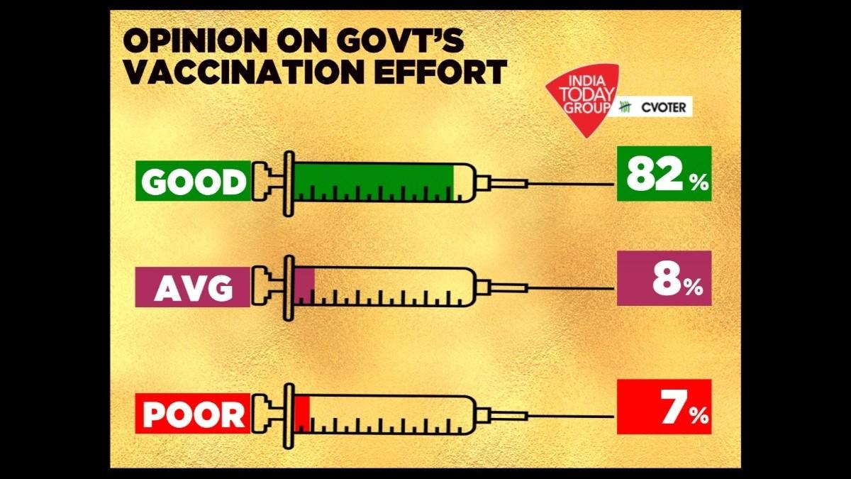 Mood Of The Nation Survey: देश का मिजाज (Mood Of The Nation) सर्वे के अनुसार, साल भर पहले चलाए गए वैक्सीनेशन के प्रयास को 82 प्रतिशत लोगों ने सही माना है. इंडिया टुडे और सी वोटर ने एक सर्वे किया है, जिसमें जनता से मोदी सरकार के कोरोना के खिलाफ वैक्सीनेशन के प्रयास पर राय मांगी गई थी. मोदी सरकार की ओर से चलाए गए वैक्सीनेशन के प्रयास को 8 प्रतिशत लोग एवरेज मानते हैं. वहीं देश में 7 प्रतिशत लोग ऐसे भी हैं, जो इसे खराब मानते हैं.