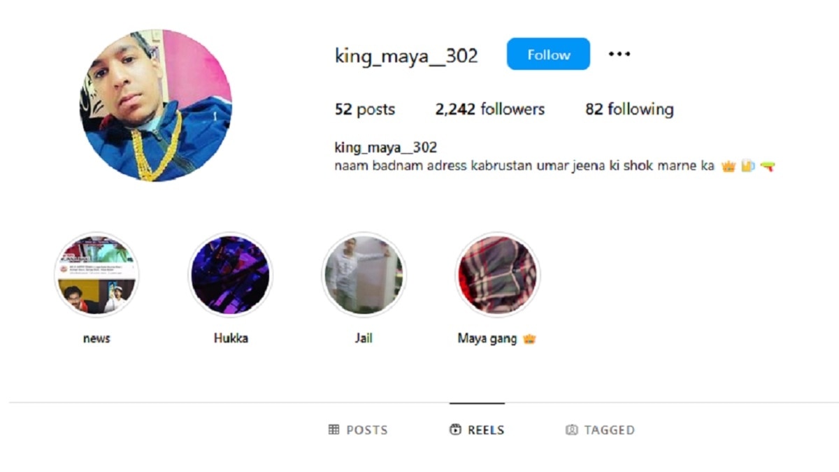 किंग माया 302 के नाम से समीर का इंस्टाग्राम प्रोफाइल है. जो बिल्कुल वैसा दिखाई देता है, जैसे कई बड़े गैंगस्टर और माफियाओं के सोशल मीडिया प्रोफाइल चर्चाओं में रहे हैं. जहां वो हथियारों की नुमाइश करते हैं और अपने गैंग के लोगों के साथ तस्वीरें शेयर करते हैं. माया के सोशल मीडिया पर भी कई ऐसे वीडियो और तस्वीरें देखी जा सकती हैं, जिनमें वो कम उम्र लड़कों के साथ ग्रुप में नजर आता है. ऐसा लगता है कि वो भी एक बड़ा गैंगस्टर बनना चाहता है. इसलिए वो बड़े अपराधियों की तरह ही सोशल मीडिया पर शो ऑफ करता है.