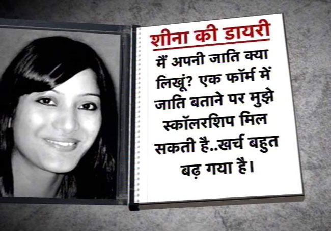 मां की शादियों और अपनी जाति को लेकर भी शीना काफी कन्फ्यूज़ रहती थी. उसने डायरी में एक जगह लिखा, 'मैं अपनी जाति क्या लिखूं? एक फॉर्म में जाति बताने पर मुझे स्कॉलरशिप मिल सकती है. पढ़ाई के साथ-साथ मेरा खर्च बहुत बढ़ गया है.' वह अपने पिता सिद्धार्थ दास से कुछ-कुछ नाराज रहती थी. उसकी डायरी में लिखी हुई कई बातें इस तरफ इशारा करती हैं.