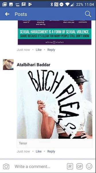 इसी कड़ी में मिताली ने भी फेसबुक पर पोस्ट किया , लेकिन अटल बिहारी बड्डर और अल्पेश रावल ने इसका मजाक उड़ाना शुरू कर दिया. मिताली को ही दोनों ने गाली देना शुरू कर दिया. इतना ही नहीं, फेसबुक पर जिन लोगों ने मिताली का समर्थन किया, उन महिलाओं के खिलाफ भी असभ्य टिप्पणी की गईं और गालियां दी गईं.