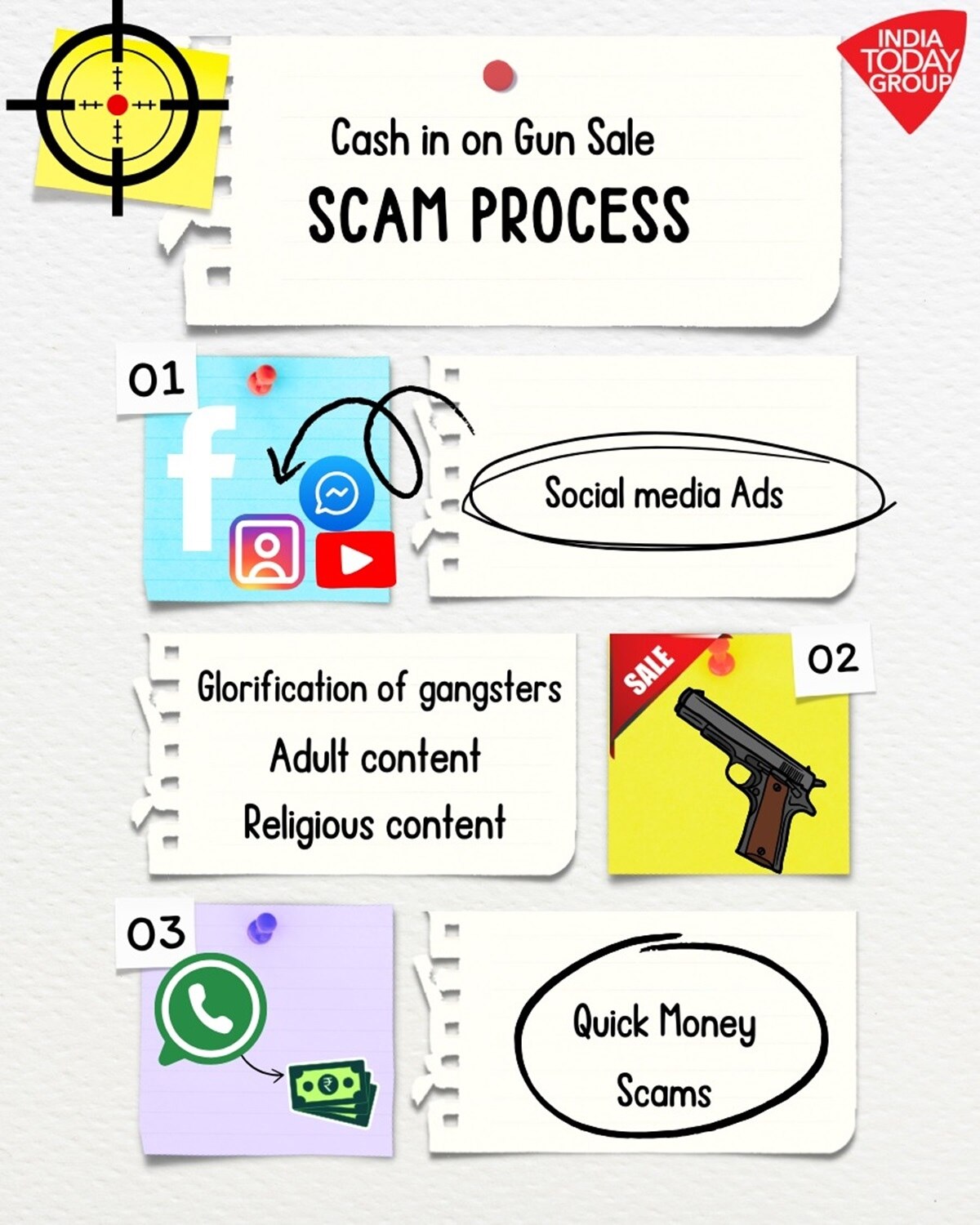इन गैंगस्टरों का महिमामंडन करने वाले आकर्षक संपादनों के बीच, समूह में बिक्री के लिए बंदूकों का विज्ञापन करने वाले लगभग 50 पोस्ट भी हैं, जिन्हें अक्सर संपर्क के लिए व्हाट्सएप नंबर के साथ जोड़ा जाता है. ऐसे समूह भी हैं, जो केवल आग्नेयास्त्रों की बिक्री के लिए समर्पित हैं.
