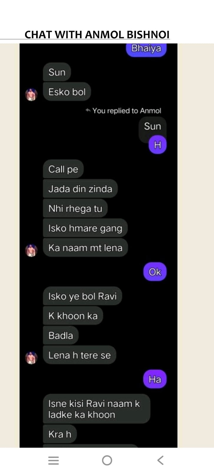 आज तक/इंडिया टुडे के हाथ सलमान खान पर हमला करवाने वाले अनमोल बिश्नोई का बिहार के एक लड़के के साथ सिग्नल पर हुई बातचीत का चैट लगा है. इस में दिख रहा है कि कैसे अनमोल बिश्नोई अमेरिका में बैठ कर बिहार के एक लड़के को स्लीपर सेल की तरह इस्तेमाल कर गैंग के लिए काम करने, धमकाने, गोली चलाने का ऑर्डर दे रहा है.