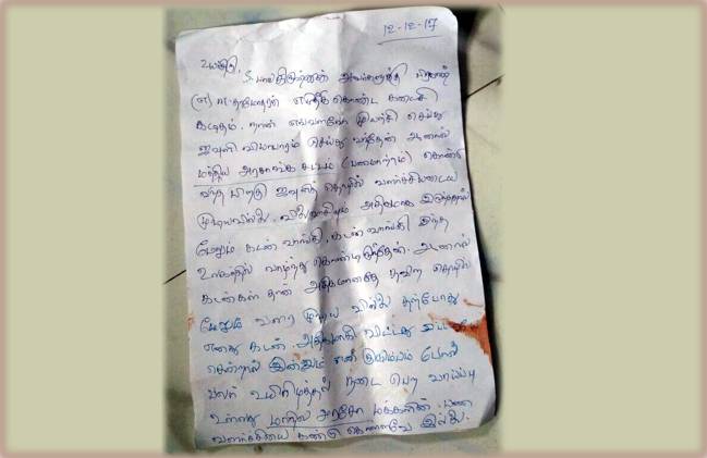 प्रारंभिक जांच के मुताबिक, दामोदरन ने यह सुसाइड नोट अपने एक रिश्तेदार को लिखा था, जिसमें उसने कहा है कि उसे कारोबार में भारी नुकसान उठाना पड़ा है और इसी के चलते वह यह खतरनाक कदम उठा रहा है. दामादोरन ने चिट्ठी में अपने बिजनेस और लेनदेन के बारे में विस्तार से लिखा है.