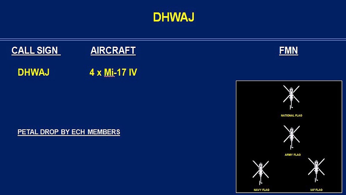 इसके बाद आएगा प्रहार फॉर्मेशन जिसमें तीन ALH एडवांस्ड लाइट हेलिकॉप्टर हैं. आगे वाला हेलिकॉप्टर ऑपरेशन सिंदूर का फ्लैग लेकर उड़ेगा. पीछे वाले दो 118 HU और आर्मी एविएशन का झंडा लेकर उड़ रहे हैं. (Photo: IAF)