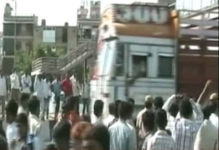 गाजियाबाद के लोनी में एक तेज़ रफ्तार ट्रक ने बाइक पर सवार बाप बेटे को कुचल दिया और ट्रक ड्राइवर मौके से फरार हो गया. हादसे से नाराज़ लोगों ने हाइवे पर जाम लगा दिया और वहां खड़े चार ट्रकों को आग के हवाले कर दिया. आधा दर्जन दुकानों में भी आग लगा दी. हालात को काबू करने पहुंची पुलिस पर भी लोगों ने जमकर पथराव किया.
