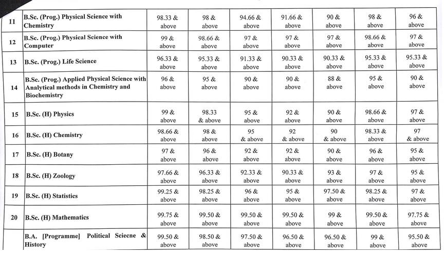 मिरांडा हाउस और रामजस कॉलेज में बीए (हॉनर्स) राजनीति विज्ञान के लिए कट-ऑफ 100 प्रतिशत तक बढ़ गया है. किरोड़ीमल कॉलेज में पोल साइंस (हॉनर्स) के लिए सबसे ज्यादा कट ऑफ 99.75 फीसदी है.