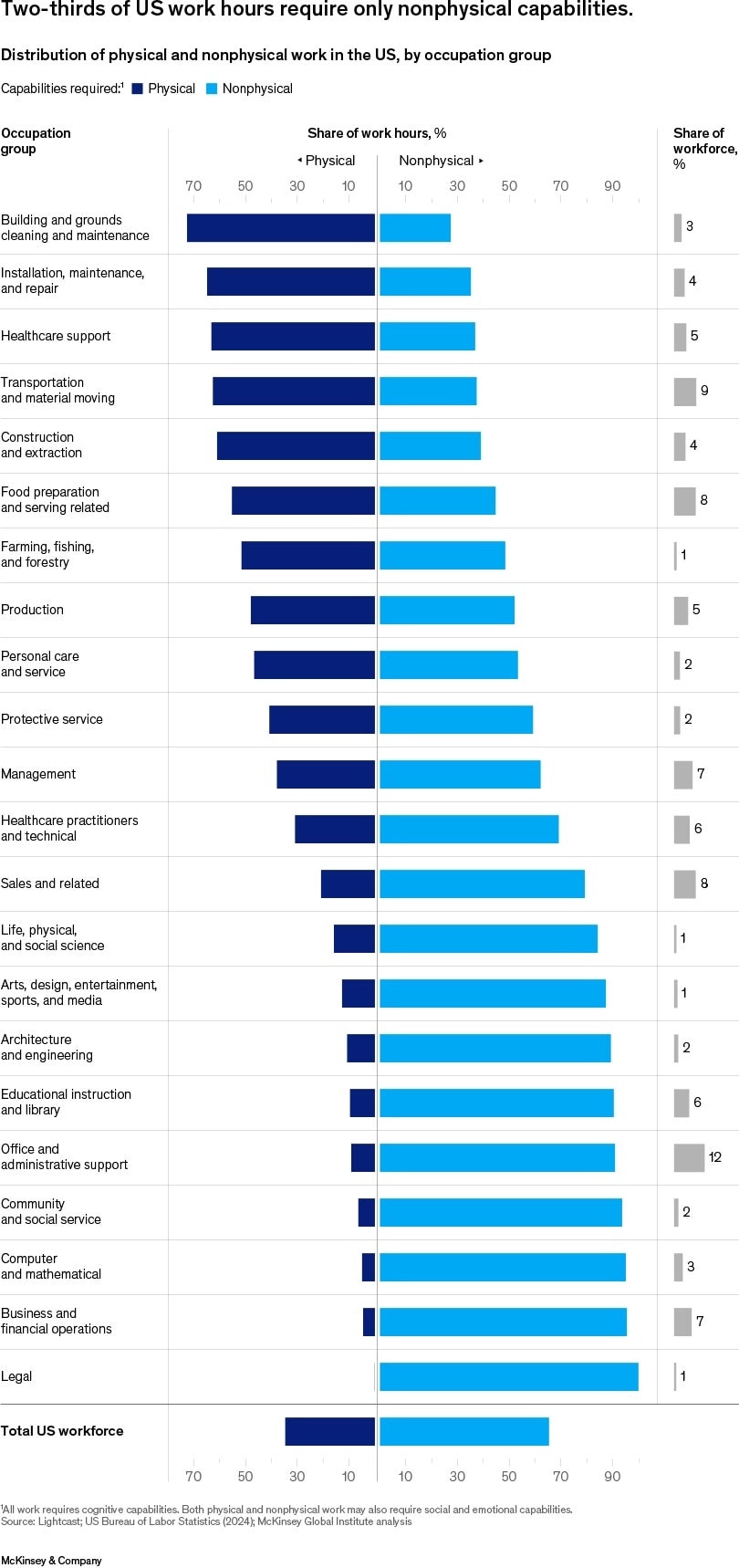 मैकिन्से ने अपनी रिपोर्ट में 'सोलर फार्म' और 'स्टोर' के उदाहरणों से समझाया है कि भविष्य में वर्कफ़्लो कैसे बदल जाएगा: