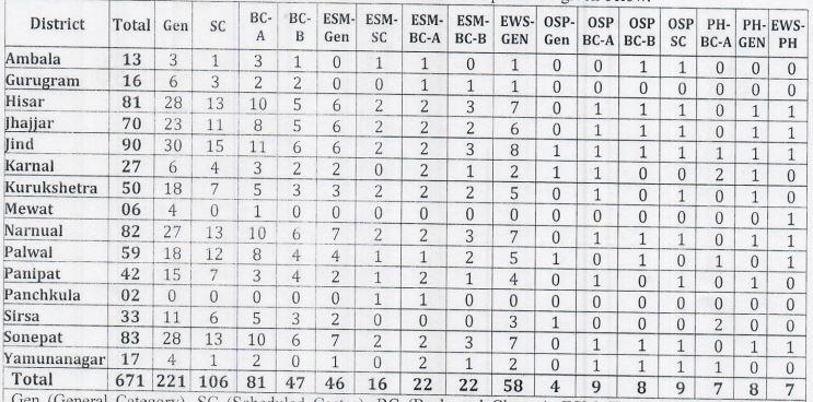 NHM हरियाणा भर्ती 2021 के अंतर्गत CHO के कुल 671 पदों पर नियुक्ति की जाएगी. जिसमें हरियाणा के सभी जिलों के लिए रिक्त पदों की संख्या अलग-अलग निर्धारित है.