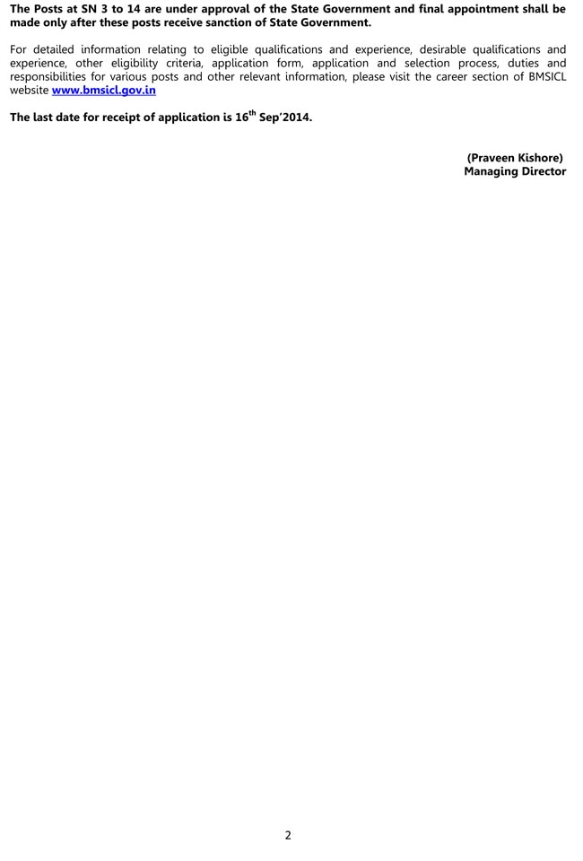 ज्यादा जानकारी के लिए bmsicl.gov.in/CareerNew.aspx पर लॉग इन करें.
