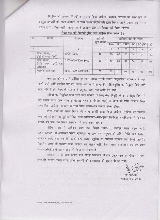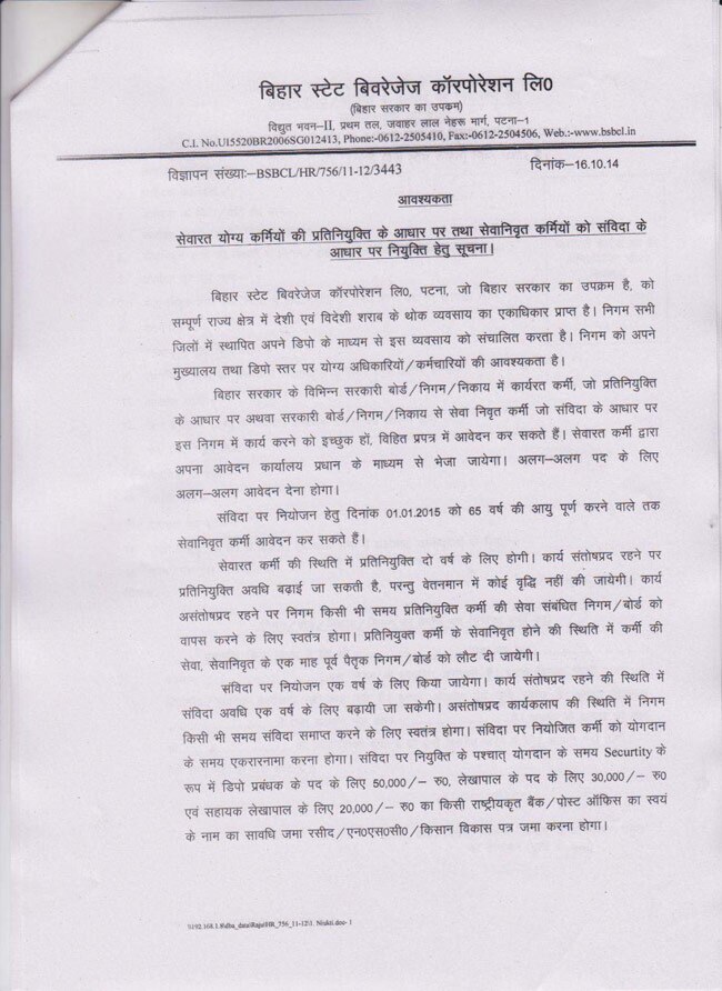 बिहार स्टेट बिवरेजेज कॉरपोरेशन लिमिटेड में वैकेंसी निकली हैं. इच्छुक उम्मीदवार 12 नवंबर तक आवेदन कर सकते हैं.