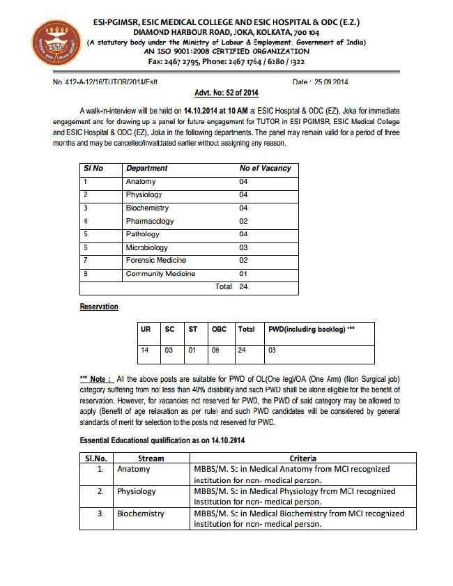 मेडिकल कॉलेज एंड पोस्ट ग्रेजुएट इंस्टीट्यूट ऑफ मेडिकल साइंसेज एंड रिसर्च में ट्यूटर पद के लिए वैकेंसी निकली हैं. इच्छुक आवेदक 14 अक्टूबर तक आवेदन कर सकते हैं.