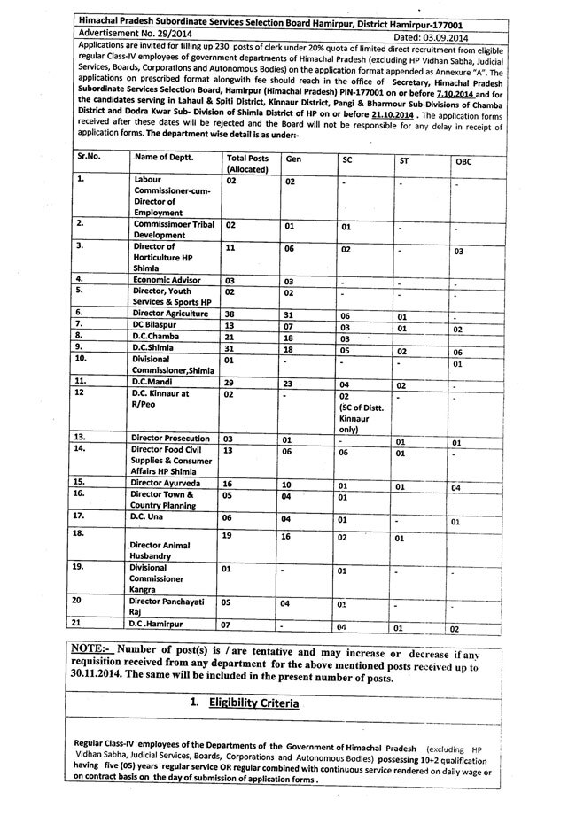 हिमाचल प्रदेश सब-ऑर्डिनेट सर्विसेज सेलेक्शन बोर्ड (HPSSSB) में भर्तियां निकली हैं. आवेदन 7 अक्टूबर तक स्वीकार किए जाएंगे. और पढ़ेंकुल पद : 230 योग्यता : 10वीं पासज्यादा जानकारी के लिए himachal.nic.in/index.php?lang=1&dpt_id=23 पर लॉग इन करें.