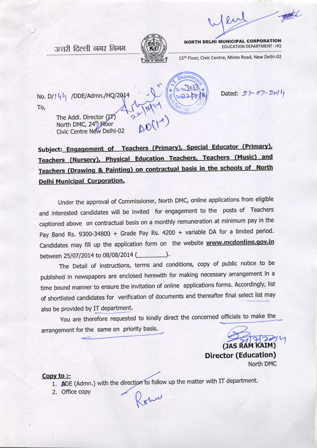 नॉर्थ दिल्ली नगर निगम (NDMC) में विभिन्न पदों के लिए 525 वैकेंसी निकली हैं. इसके लिए आवदेन करने की आखिरी तारीख 8 अगस्त, 2014 है. सबसे ज्यादा वैकेंसी प्राइमरी शिक्षकों के लिए निकाली गई है.