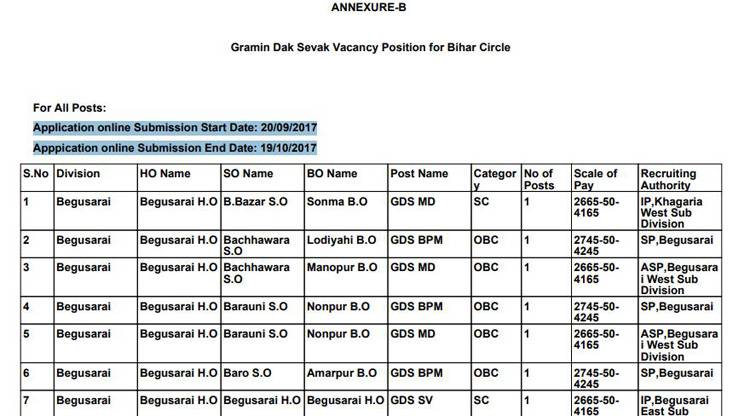 Bihar Postal Circle में Gramin Dak Sevak के पदों के लिए नोटिफिकेशन जारी किया गया है. इस सरकारी नौकरी के लिए आवेदन करने से पहले रोजगार संबंधी सभी आवश्यक जानकारियां पढ़ लें, उसके बाद ही आवेदन करें.