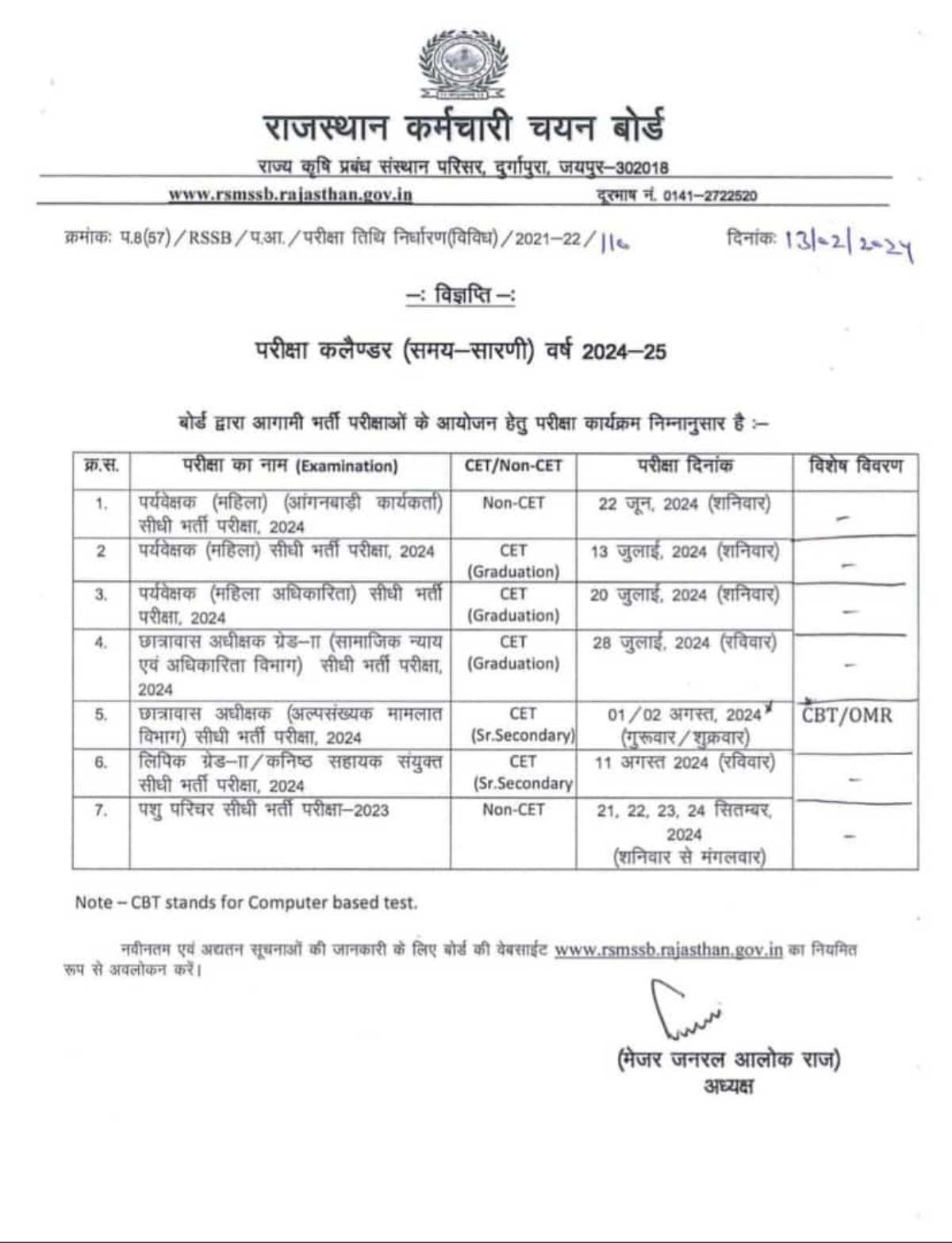 RSMSSB Exam Calendar 2024 Out: राजस्थान कर्मचारी चयन बोर्ड (RSMSSB) ने 2024-25 के लिए विभिन्न भर्ती परीक्षाओं का कैलेंडर (Sarkari Naukri Exam Calendar 2024) जारी किया है. इन भर्ती परीक्षाओं के माध्यम से राज्य में 11 हजार से अधिक खाली पदों को भरा जाएगा. जारी एग्जाम कैलेंडर में कुल 7 भर्ती परीक्षाओं को शामिल किया गया है. सरकारी नौकरी की तलाश कर रहे योग्य उम्मीदवार बोर्ड की आधिकारिक वेबसाइट पर जाकर एग्जाम कैलेंडर चेक कर सकते हैं.