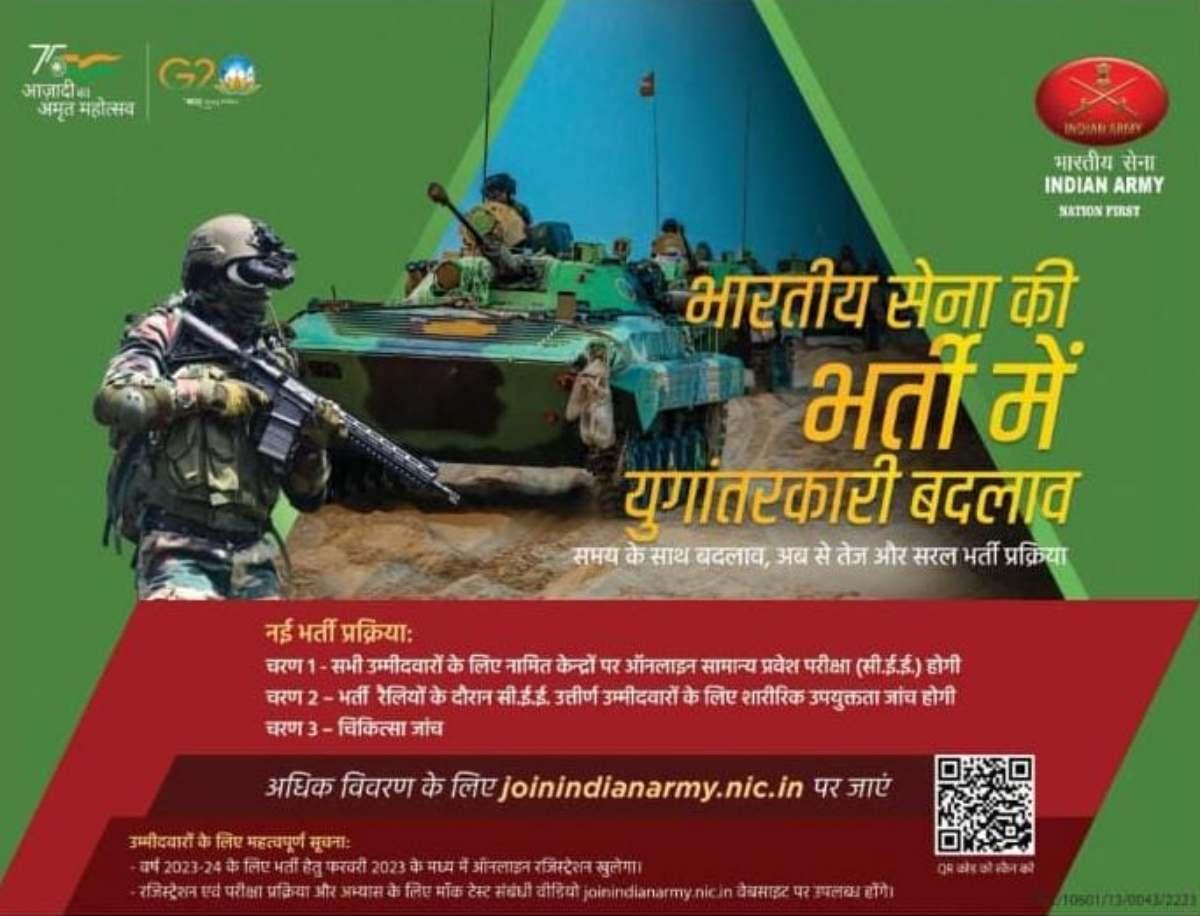 भारतीय सेना अब नई प्रक्रिया के माध्यम से अग्निवीरों की भर्ती करेगा. उम्मीदवारों को पहले कॉमन एंट्रेंस एग्जाम देना होगा, बाद में फिजिकल टेस्ट और मेडिकल टेस्ट होगा. यहां क्लिक कर जानिए क्या है वजह-