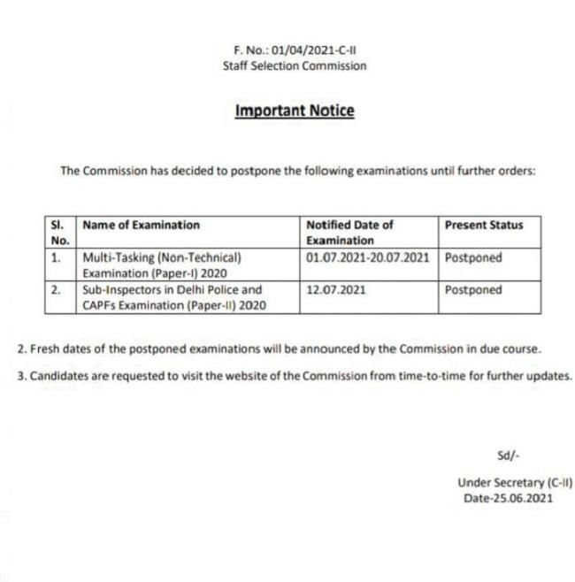 आधिकारिक नोटिस के अनुसार, स्थगित परीक्षाओं की नई तारीखों की घोषणा आयोग द्वारा जल्द की जाएगी. उम्मीदवारों से अनुरोध है कि वे आगे की अपडेट के लिए समय-समय पर आयोग की वेबसाइट देखते रहें.
