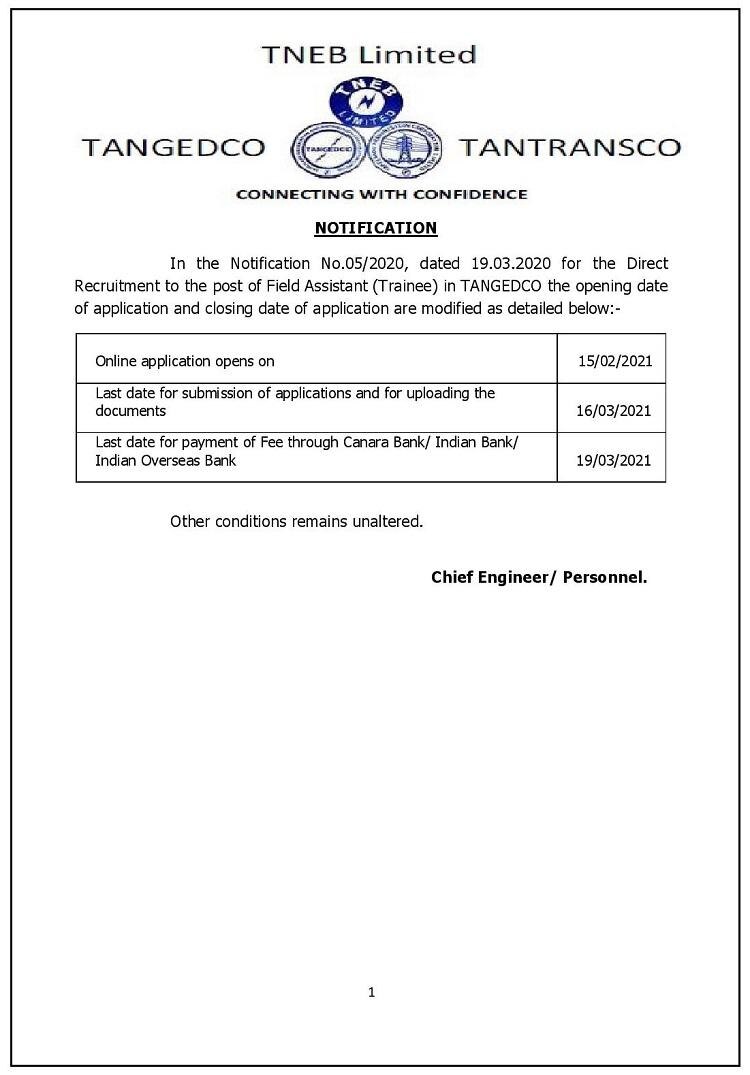 इस भर्ती (TANGEDCO Field Assistant Vacancy 2021) के तहत चयनित उम्मीदवारों को 18800 रुपये प्रति माह से लेकर 59900 रुपये प्रति माह तक का वेतन मिलेगा.