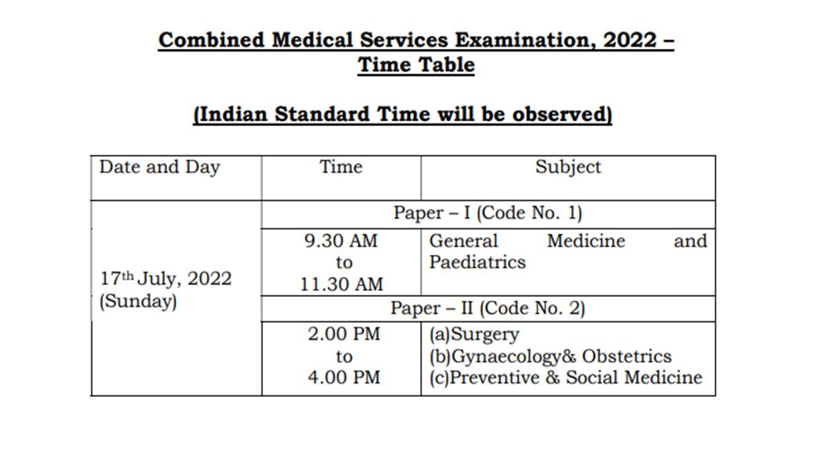 यूपीएससी द्वारा जारी नोटिस के अनुसार, भारतीय आर्थिक सेवा (आईईएस) या भारतीय सांख्यिकी सेवा (आईएसएस) परीक्षा और संयुक्त चिकित्सा परीक्षा (सीएमएस) एग्जाम जून और जुलाई 2022 में आयोजित किए जाएंगे. आईईएस/आईएसएस परीक्षा 24 जून से 26 जून तक आयोजित की जाएगी. परीक्षा दो सत्रों में सुबह 9 बजे से दोपहर 12 बजे तक और दोपहर 2 बजे से शाम 5 बजे तक आयोजित की जाएगी. वहीं संयुक्त चिकित्सा सेवा परीक्षा रविवार 17 जुलाई को दो शिफ्ट में सुबह 9:30 बजे से 11:30 बजे तक और दोपहर 2 बजे से शाम 4 बजे तक होगी.