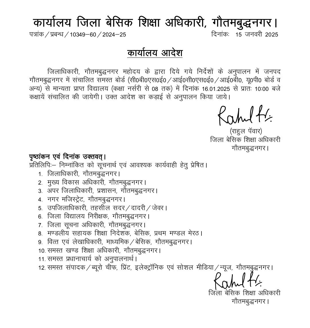 ठंड के बढ़ते प्रकोप को देखते हुए गौतमबुद्धनगर जिला प्रशासन ने बच्चों की सुरक्षा के लिए एक अहम कदम उठाया है. नर्सरी से लेकर कक्षा 8वीं तक के सभी विद्यार्थियों के लिए अब स्कूल का समय बदल दिया गया है. जिला प्रशासन ने आदेश जारी करते हुए कहा है कि जिले के सभी बोर्ड के स्कूल अब सुबह 10 बजे से शुरू होंगे. यह बदलाव जिले के सभी निजी और सरकारी स्कूलों पर लागू होगा.