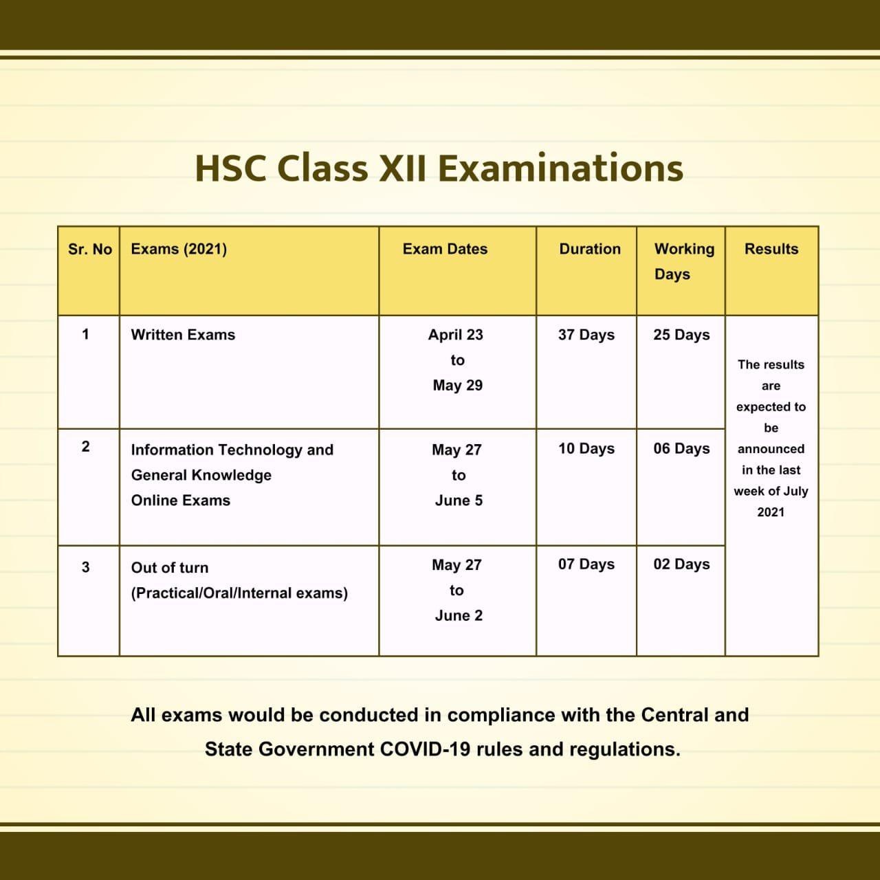 महाराष्ट्र राज्य की शिक्षा मंत्री वर्षा गायकवाड़ ने गुरुवार 21 जनवरी को 10वीं और 12वीं की बोर्ड परीक्षाओं की डेट्स जारी कर दी है. शिक्षामंत्री के अनुसार, कक्षा 12वीं की परीक्षा 23 अप्रैल से 29 मई तक और कक्षा 10वीं की परीक्षा 29 अप्रैल से 31 मई तक आयोजित की जाएंगी. परीक्षाएं आमतौर पर फरवरी और मार्च में आयोजित की जाती हैं मगर इस वर्ष COVID-19 महामारी के कारण परीक्षाएं अप्रैल-मई में आयोजित की जा रही हैं.