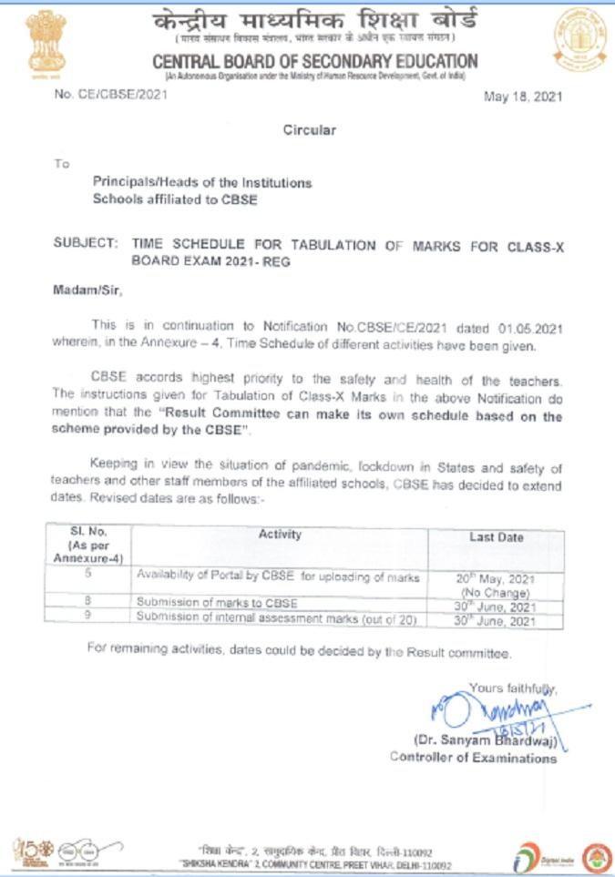 CBSE 10th Result 2021 Latest Updates: केंद्रीय माध्यमिक शिक्षा बोर्ड (सीबीएसई) कक्षा 10वीं का रिजल्ट अब 20 जून को जारी नहीं किया जाएगा. दरअसल, बोर्ड ने स्कूलों को मार्क अपलोड करने के लिए दो तारीख दी थी उसमें थोड़ा फेर बदल किया गया है. सीबीएसई बोर्ड ने 10वीं के रिजल्ट अपलोड का आधिकारिक नोटिस भी जारी किया है.