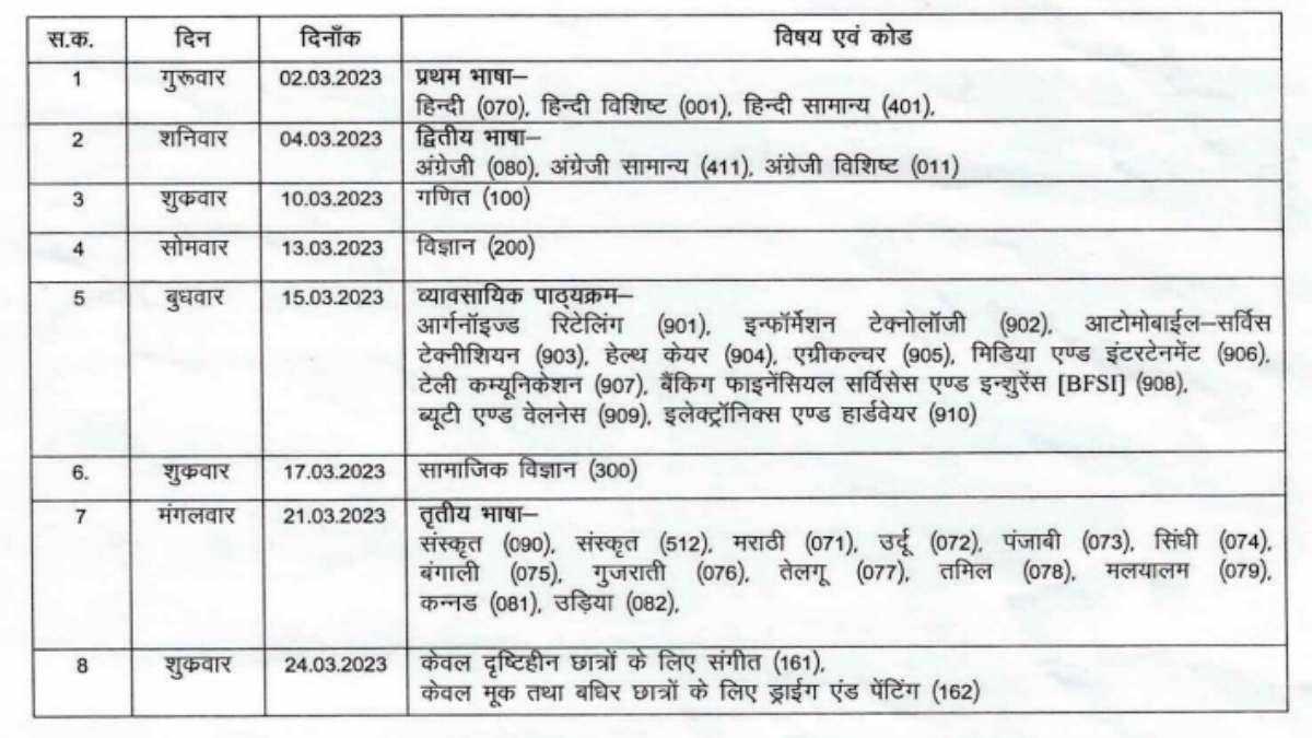 स्टेप 4: इस पीडीएफ में 10वीं-12वीं की सब्जेक्ट वाइज डेटशीट चेक कर सकते हैं.