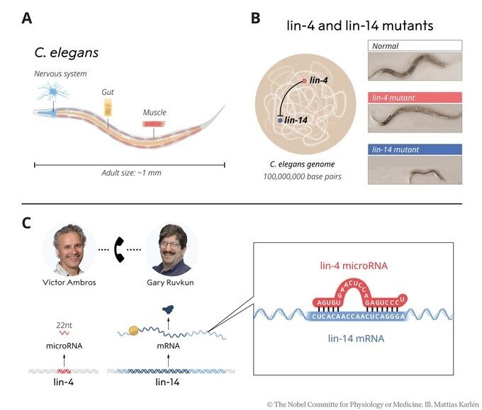 विक्टर एम्ब्रोस और गैरी रुवकुन दोनों यह जानने के इच्छुक थे कि अलग-अलग सेल्स टाइप कैसे विकसित होते हैं. तब उन्होंने आइक्रोआरएनए की खोज की, जो छोटे आरएनए मॉलिक्यूल्स का एक नया वर्ग है. ये जीन विनियमन में महत्वपूर्ण भूमिका निभाते हैं. उनकी अभूतपूर्व खोज ने जीन विनियमन के एक बिल्कुल नए सिद्धांत को दुनिया के सामने रखा है, जो इंसानों के अलावा बहुकोशिकीय जीवों के लिए कारगर साबित होगी. अब यह पता चल गया है कि मानव जीनोम एक हज़ार से अधिक माइक्रो-आरएनए के लिए कोड करता है. उनकी आश्चर्यजनक खोज ने जीन विनियमन के एक बिल्कुल नए आयाम को उजागर किया. माइक्रो-आरएनए जीवों के विकास और कार्य करने के तरीके के लिए मौलिक रूप से महत्वपूर्ण साबित हो रहे हैं.