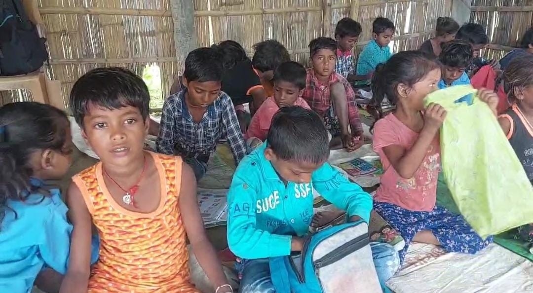 यहां भवनहीन विद्यालय होने की वजह से बैठने तक की सुविधा नहीं है. फूस से बने दो कमरे के अंदर एक साथ सभी बच्चे खड़े भी नहीं हो सकते हैं. डेस्क और बेंच ना होने की वजह से 1 से 8 तक के स्कूली छात्र और छात्राएं बैठने के लिए अपने साथ घर से खाली बोरा लेकर आते हैं. वो उसे बिछाकर ही पढ़ते हैं.