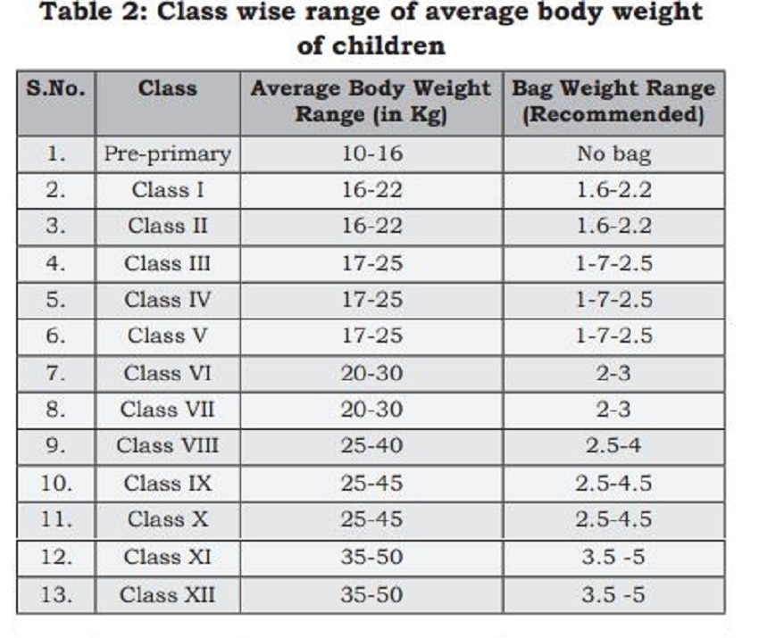 क्लास के अनुसार कितना भारी हो स्कूल बैग