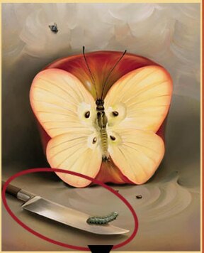 इस तस्वीर को देखते ही आपको जो सबसे पहले नजर आएगा वह आपकी पर्सनैलिटी को दर्शाएगा. तस्वीर को गौर से देखिए और बताइए आपको इस तस्वीर में क्या नजर आया. कुछ लोगों को इसमें सेब नजर आया तो कुछ को तितली. वहीं, कुछ लोगों का ध्यान चाकू पर गया तो कुछ का कैटरपिलर पर. आपने इस तस्वीर में पहले क्या देखा, उस आधार पर जानें अपनी पर्सनैलिटी.