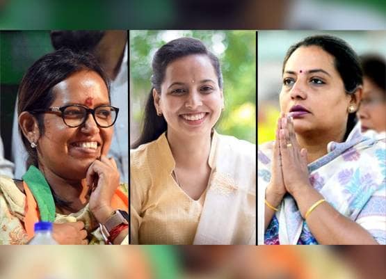 फोटो: वर्षा, अदिति और यशोमति ठाकुर (बाएं से दाएं)
