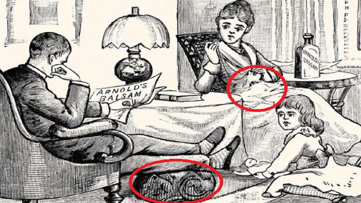 आप इस तस्वीर में देखेंगे कि कमरे में एक माता-पिता और बच्ची मौजूद है. जिसमें आदमी सोफे पर बैठे हुए अखबार पढ़ रहा है और महिला उसके सामने कुर्सी पर बैठी है. दोनों के बीच में मेज है और छोटी बच्ची फर्श पर बैठी हुई खेल रही है. लेकिन इस तस्वीर में दो बिल्लियां भी है. क्या आप इन्हें देख पा रहे हैं ?