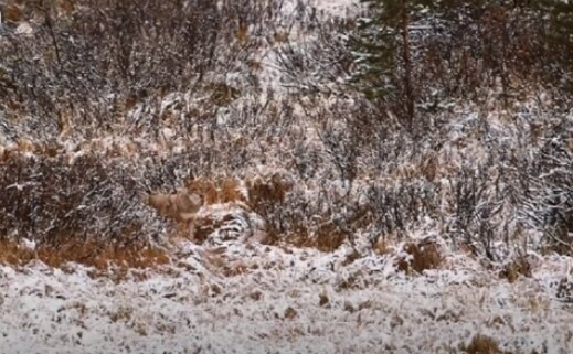 इस तस्वीर के एकदम केंद्र में भेड़िया खड़ा है. अगर आप ध्यान से देखेंगे तो आपको ये नजर आ जाएगा. हालांकि, ये केंद्र से थोड़ा बाईं तरफ है. भेड़िए और झाड़ियों का रंग लगभग एक जैसा है, जिसके चलते इसे पहचान पाना मुश्किल हो रहा है. लेकिन जब आप ध्यान से देखेंगे तो आपको लगेगा जैसे ये तो आपके सामने ही है. उम्मीद है अब आपको तेंदुआ मिल गया होगा.