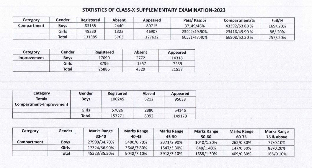 सीबीएसई ने कक्षा 10 की कंपार्टमेंट या पूरक परीक्षा 17 से 22 जुलाई तक आयोजित की थी. सीबीएसई ने कंपार्टमेंट छात्रों के लिए 6 जुलाई से 20 जुलाई 2023 तक प्रैक्टिकल परीक्षा आयोजित की थी.