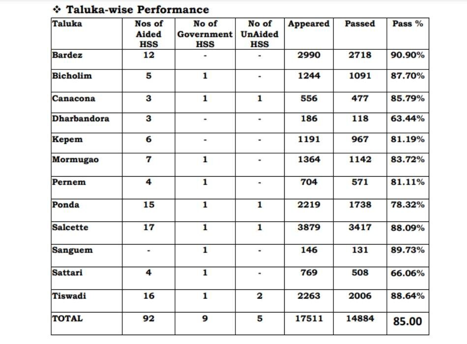 गोवा 12वीं बोर्ड रिजल्ट: तालुका वाइस स्टूडेंट्स का परफॉर्मेंस