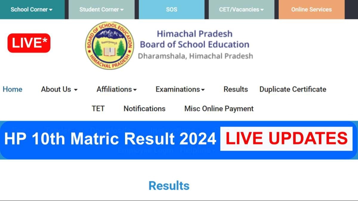स्टेप 3: यहां 'हिमाचल प्रदेश बोर्ड क्लास 10th एग्जामिनेशन मैट्रिक रिजल्ट 2024' लिंक पर क्लिक करें.