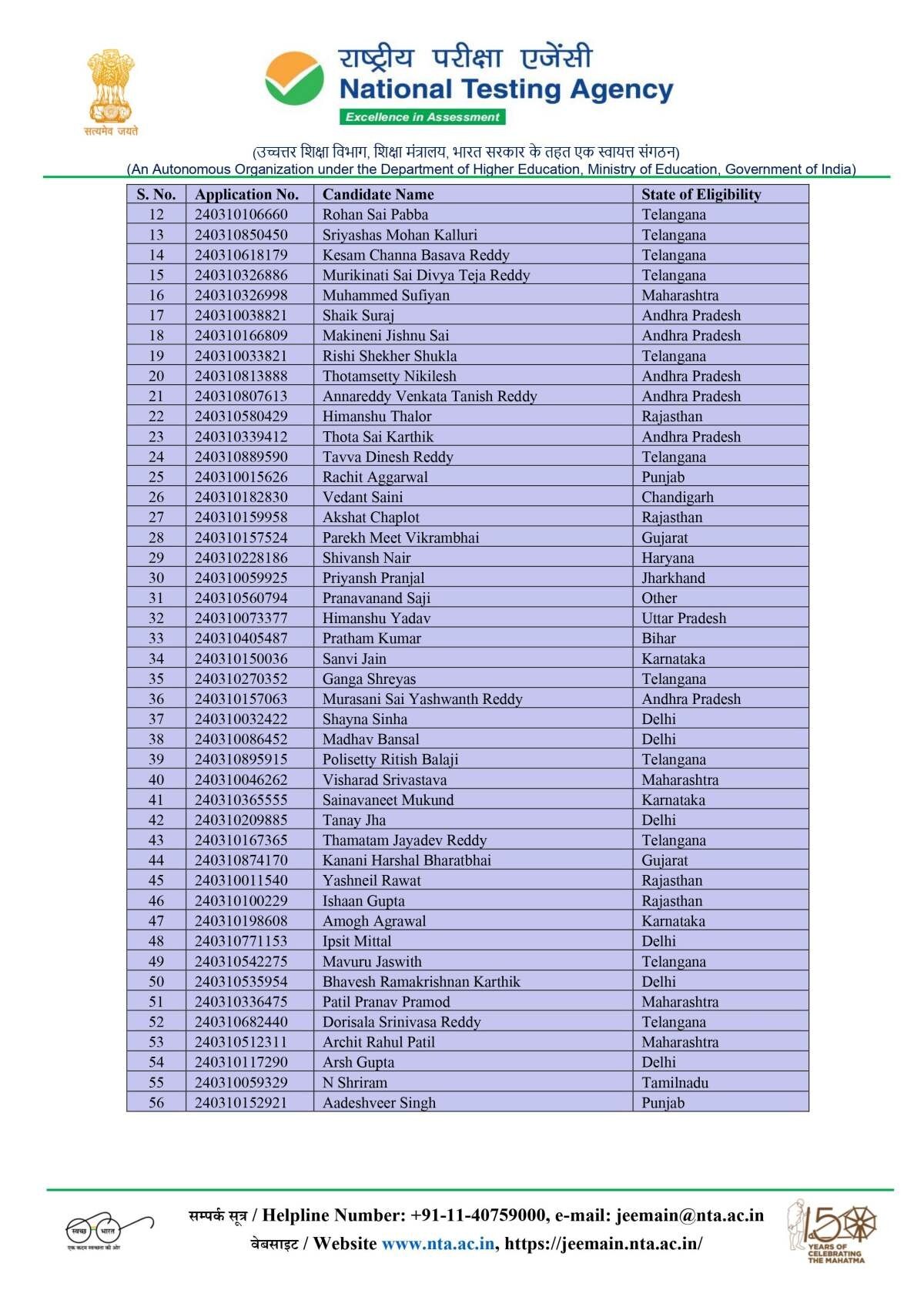 JEE Mains Result 2024 Session 2 State wise: नेशनल टेस्टिंग एजेंसी (एनटीए) ने जेईई मेन्स सेशन-2 का रिजल्ट जारी कर दिया है. नतीजे, 24 अप्रैल को देर रात 11 बजे आधिकारिक वेबसाइट jeemain.nta.ac.in पर घोषित किए गए. सेशन-2 की जेईई मेन्स परीक्षा में उपस्थि हुए उम्मीदवार अब अपने एप्लीकेशन नंबर की मदद से अपना स्कोरकार्ड (JEE Mains Scorecard 2024) चेक कर सकते हैं.