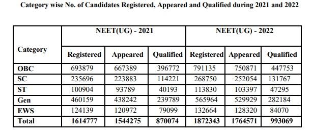 नीट यूजी की परीक्षा में सफलता हासिल करने वाले उम्मीदवारों की अधिकतम संख्या उत्तर प्रदेश (1.17 लाख) से है, इसके बाद महाराष्ट्र (1.13 लाख) और राजस्थान (82,548) हैं. चार उम्मीदवारों ने इस साल नीट में 720 में से 715 अंक हासिल किए हैं.