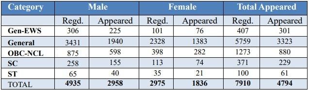 जारी नोटिस के अनुसार, परीक्षा के लिए कुल 4935 पुरुष और 2975 महिला उम्मीदवारों ने रजिस्ट्रेशन कराया था, जिनमें से 2958 पुरुष और 1836 महिला उम्मीदवार परीक्षा में शामिल हुए थे.