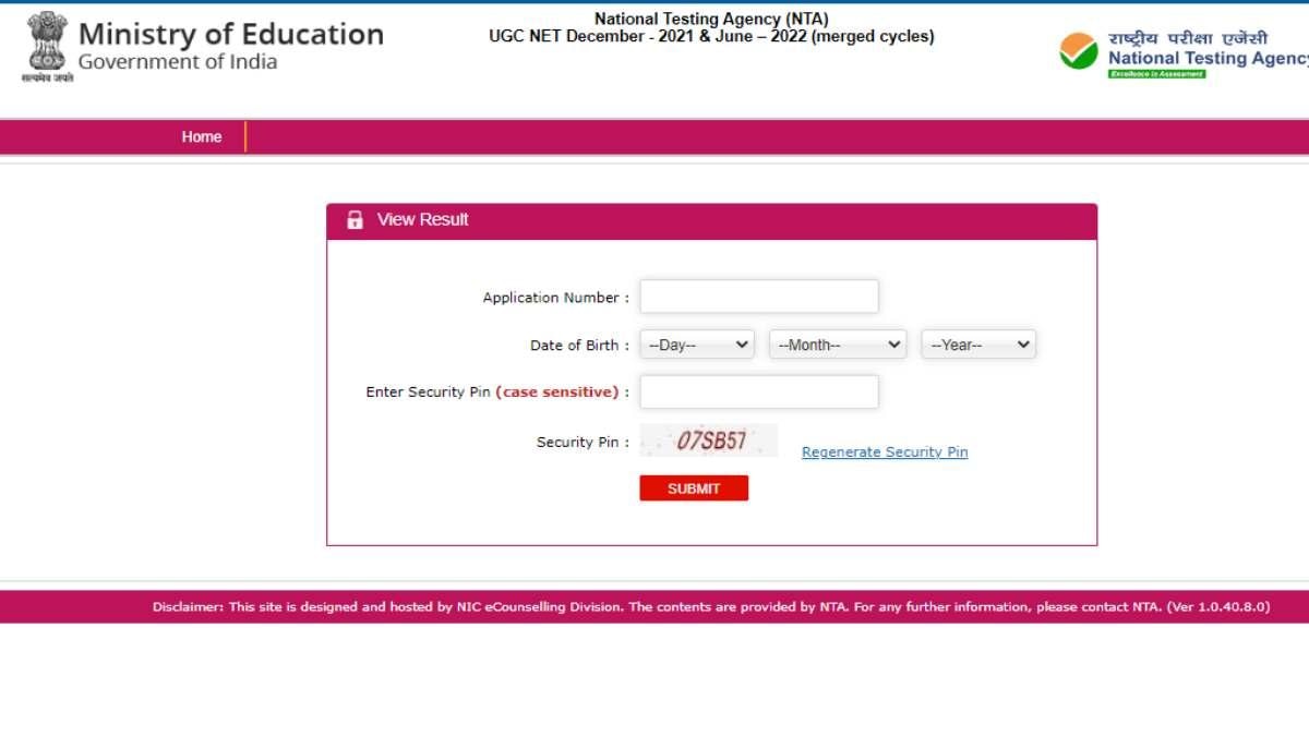 चरण 2: होम पेज पर, यूजीसी नेट रिजल्ट लिंक पर क्लिक करें.