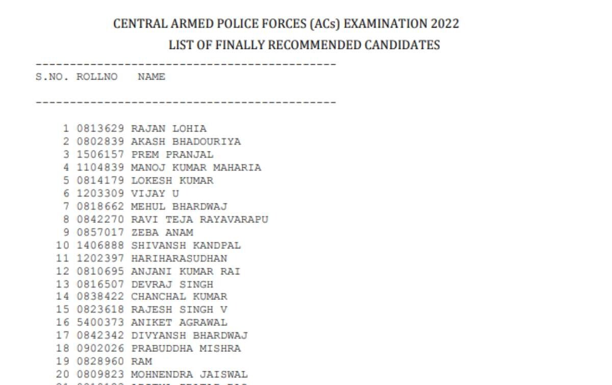 यूपीएससी सीएपीएफ एस फाइनल रिजल्ट 2022 का Direct Link