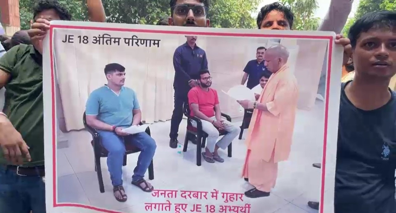 जब सीएम संबोधन दे रहे थे तब जूनियर इंजीनियर अभ्यर्थियों ने UPSSSC कार्यालय का घेराव किया. धरना दिया और 2018 JE रिक्ति में रिजल्ट घोषणा की मांग की. इस दौरान प्रदर्शन कर रहे अभ्यर्थियों के हाथ में पोस्ट थे. इन पर लिखा था, "एक छोटी सी नौकरी का तलबदार हूं. मैं तुमसे कुछ और मांगू तो गुनहागर हूं."