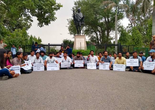 फोटो: प्रदर्शन करते एबीवीपी कार्यकर्ता