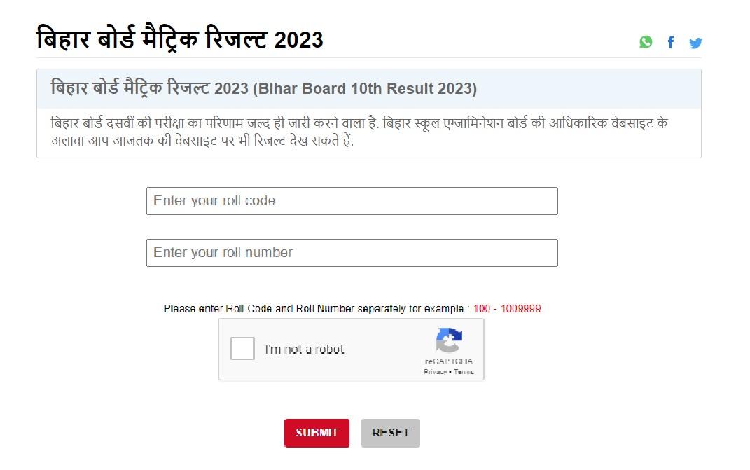 बिहार बोर्ड 10वीं का रिजल्ट कुछ मिनटों में जारी होने वाला है. छात्र अपना एडमिट कार्ड निकालकर रख लें. रिजल्ट जारी होने के तुरंत बाद छात्र अपना रोल नंबर और रोल कोड दर्ज करके अपना रिजल्ट चेक कर सकेंगे.