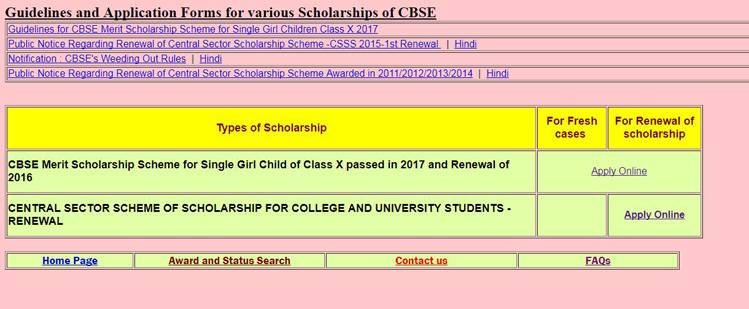 - फिर 'CBSE Merit Scholarship Scheme for Single Girl Child of Class X passed in 2017' पर क्लिक करें.