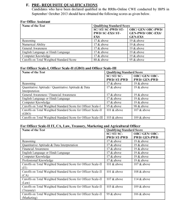 पदों के अनुसार शैक्षिक योग्यता आप आईबीपीएस की वेबसाइट से देख सकते हैं. कैंडिडेट के संबंधित शैक्षिक योग्यता के साथ-साथ सितंबर-अक्तूबर 2013 में आईबीपीएस द्वारा आयोजित ऑनलाइन सम्मिलित लिखित परीक्षा-सीडब्ल्यूई में निर्धारित अंक होने चाहिए. इन योग्यताओं पर खरा उतरने के बाद इंटरव्यू होगा.