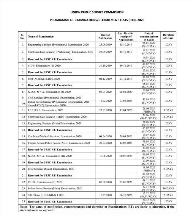 2020 के पहले महीने में, तीन परीक्षाओं अर्थात् इंजीनियरिंग सेवाओं की प्रारंभिक परीक्षा, संयुक्त भू-विज्ञानी combined geoscientist (prelims) और यूपीएससी आरटी परीक्षा (UPSC RT exam ) होगी.