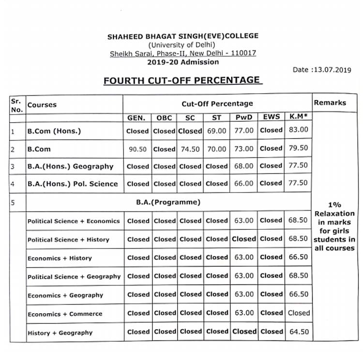 DU Cut-Off list 2019: शहीद भगत सिंह इवनिंग कॉलेज